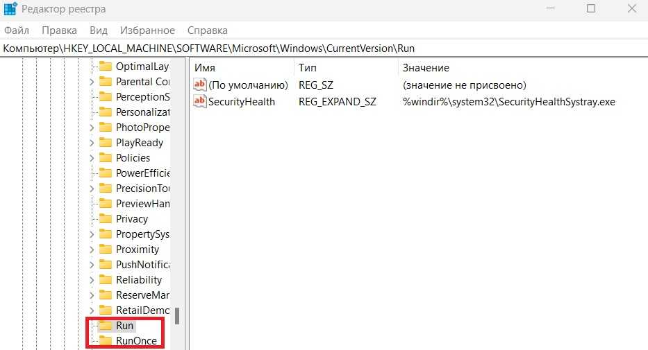 Проверить, какие программы запускаются вместе с системой, можно через редактор реестра. В поисковой строке системы начните набирать «regedit», в результатах появится ссылка на него. В редакторе справа дерево каталогов, переходите в этот: Hkey-Local-Machine\Software\Microsoft\Windows\CurrentVersion\Run.