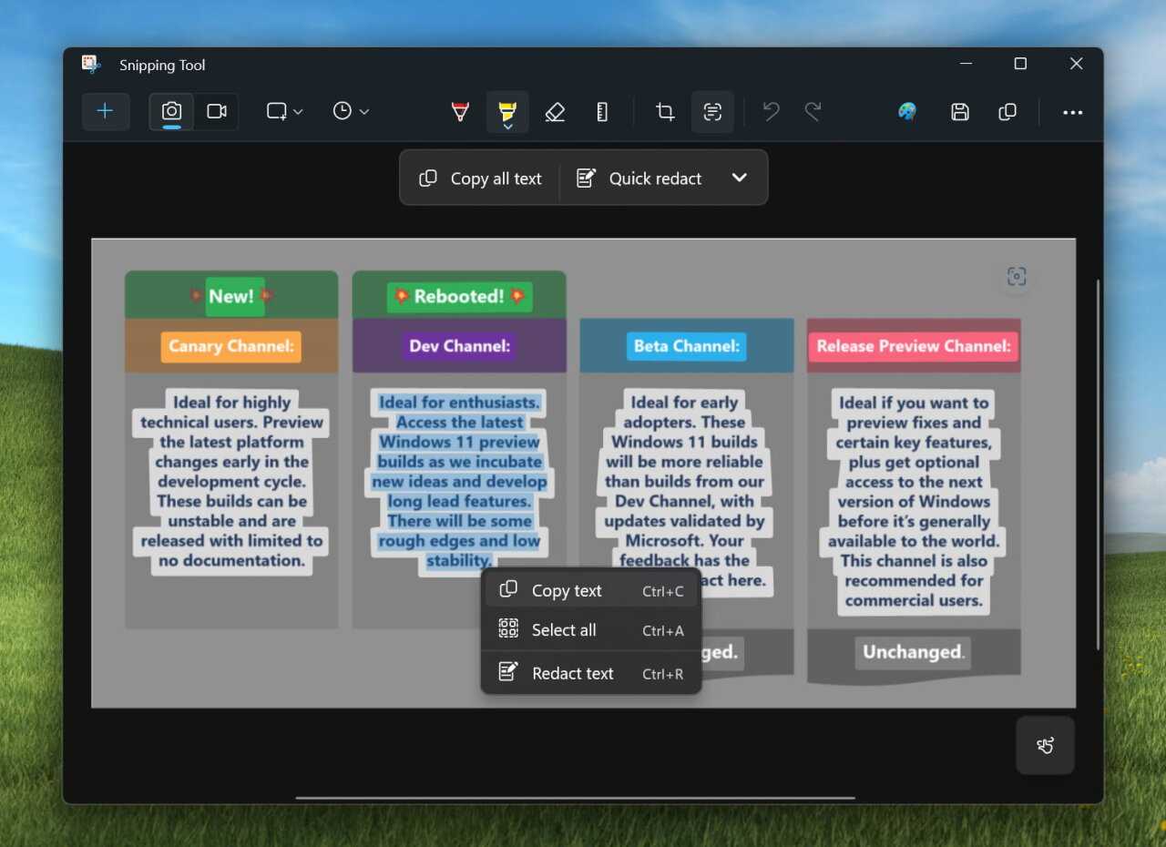 В новой версии приложения «Ножницы» появилась функция «Действия с текстом». Фактически это просто автоматическое распознавание текста (OCR) с некоторыми довольно полезными возможностями.