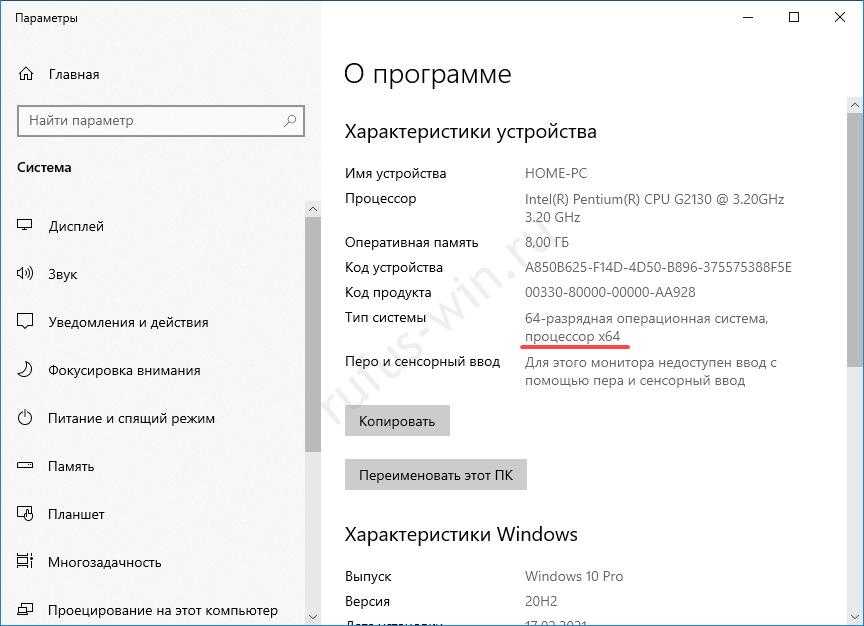 Откройте свойства директории «Этот компьютер» и посмотрите архитектуру процессора.