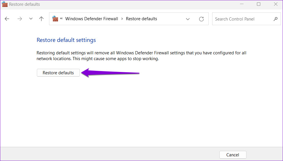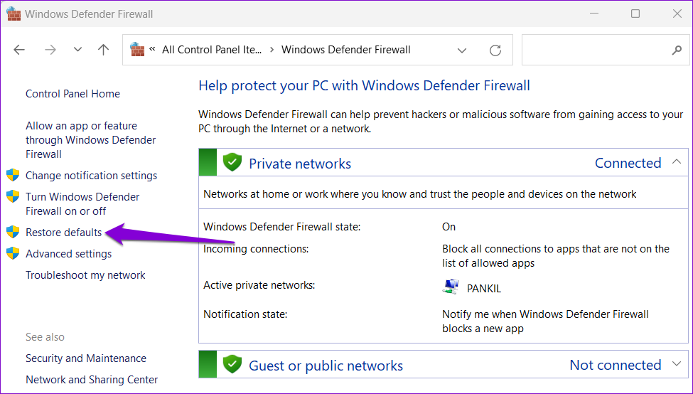 Ваши текущие настройки брандмауэра могут препятствовать обмену данными Windows с вашим принтером. Вместо того, чтобы просматривать настройки брандмауэра Windows по отдельности, вам следует рассмотреть возможность их сброса, выполнив следующие действия.