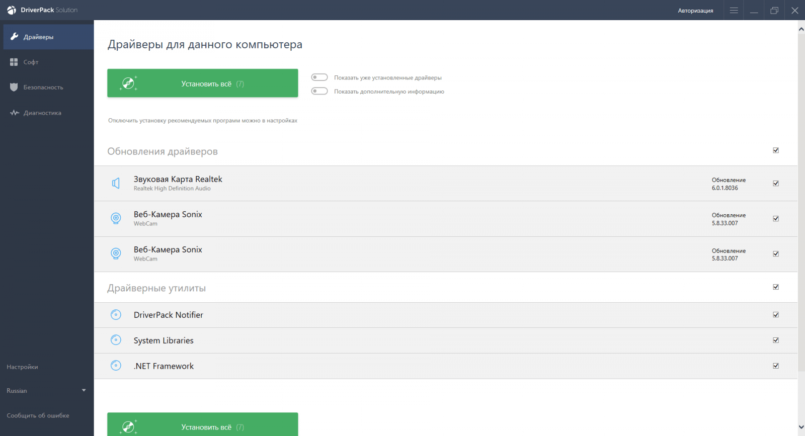 Как установить драйвера с помощью программы Snappy Driver Installer