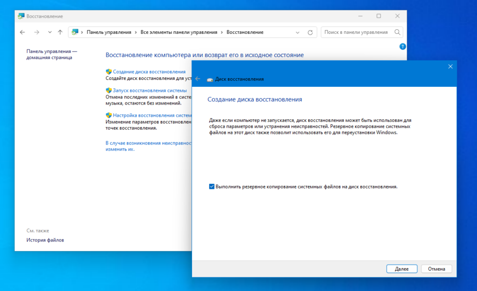 Поэтому, если будете работать с системным диском, скопируйте важные файлы на внешний носитель, и, если есть возможность, создайте резервную копию операционной системы с помощью соответствующего пункта панели управления: