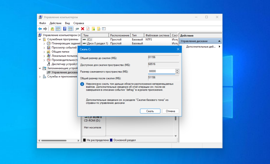 2. Уменьшение раздела Windows