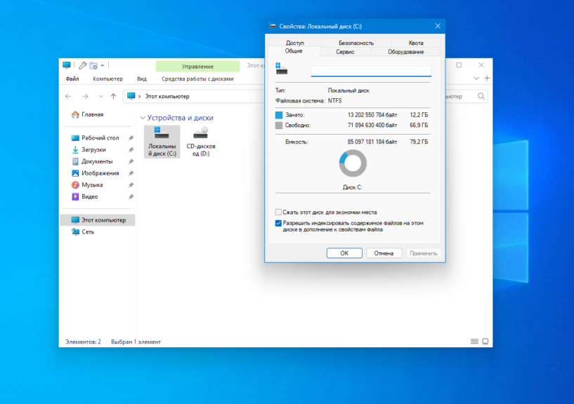 Теперь переходим непосредственно к подготовке диска для установки Windows и Linux. Проще всего это сделать с помощью стандартной утилиты управления дисками в Windows. Прежде всего, вы можете открыть мой компьютер и посмотреть характеристики своего диска C или другого диска, от которого вы хотите отделить пространство: