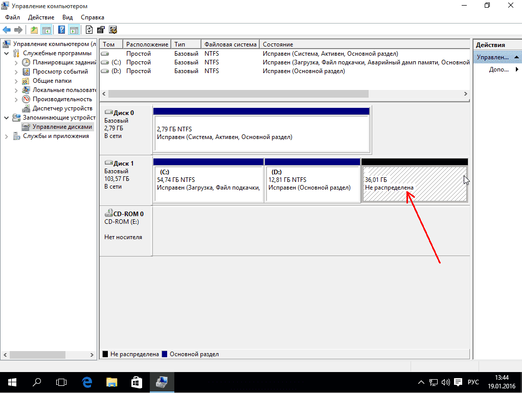 Итак, наша работа начинается с того, что нам необходимо выделить раздел на жестком диске, на который и будет инсталлирована ОС. Выполнить поставленную нами задачу можно как с помощью встроенных средств Windows, так и стороннего ПО (мы рассмотрим пример, задействующий именно встроенные инструменты ОС).