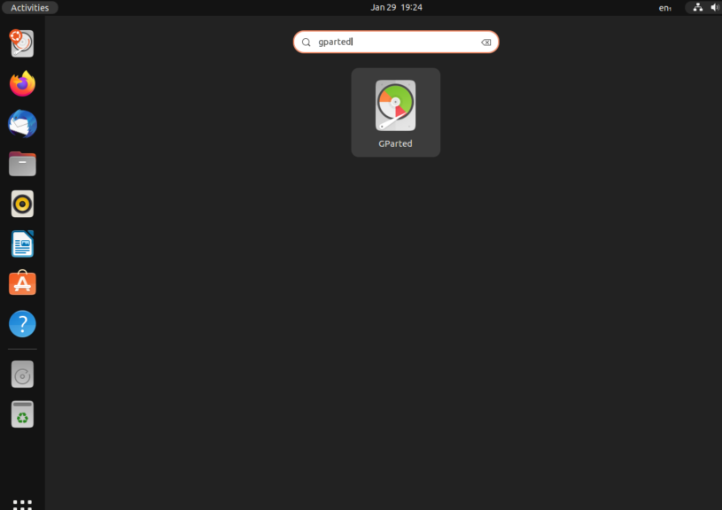 Программа GParted делает разметку диска в GNU/Linux. Если она отсутствует, ее можно установить через Центр приложений.