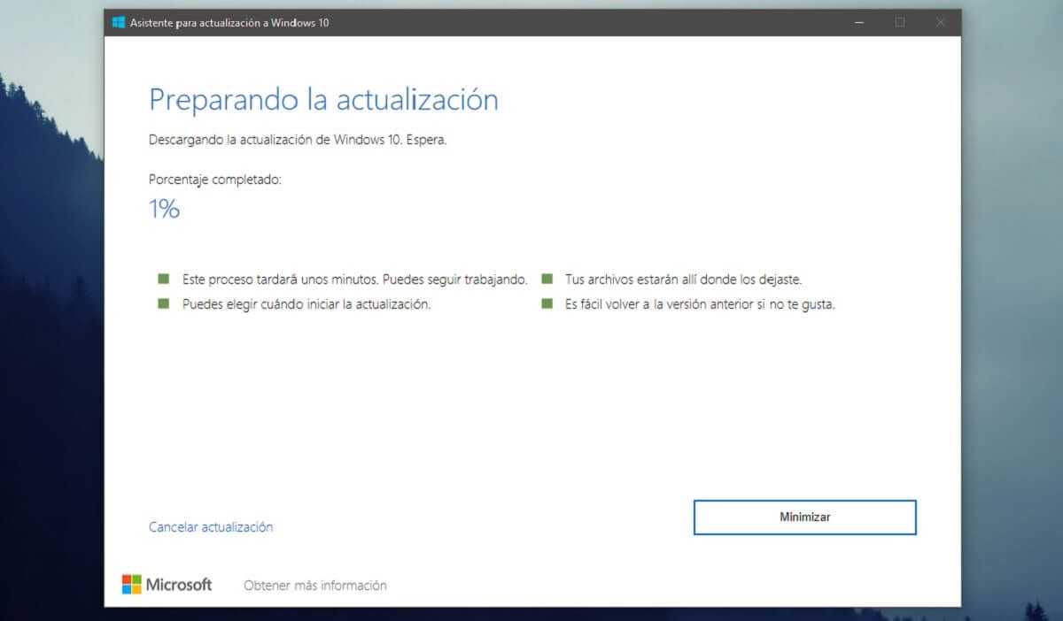 Затем он проверит, готов ли ваш компьютер к запуску обновления Windows 10, проверив, совместим ли он с новой версией или нет, а затем начнется с загрузки Windows 10 November 2019 Update. Процесс довольно автоматизирован, поэтому мастер будет устанавливать его шаг за шагом, пока для продолжения не потребуется перезагрузить компьютер.
