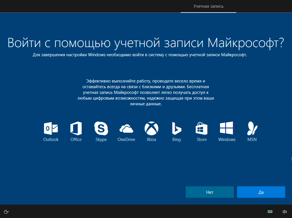 Windows повторно спросит не хотите ли вы войти с помощью учетной записи Microsoft, разумеется, вы нажимаете кнопку Нет.