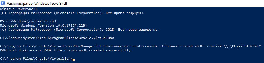 Обратите внимание, что вы можете заменить C:usb.vmdk на любое расположение файла по своему желанию. Эта команда создаёт файл диска виртуальной машины (VMDK) указывающий на физический диск, который вы выбрали