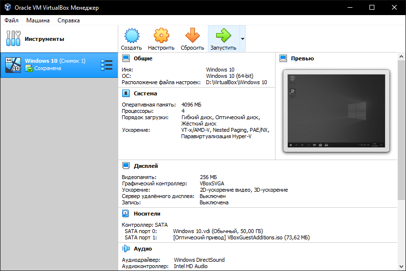 Новая виртуальная машина хоть и позволит установить Windows 10, но, скорее всего, система будет ощутимо тормозить. Поэтому заранее рекомендуем поменять некоторые параметры, чтобы повысить быстродействие.