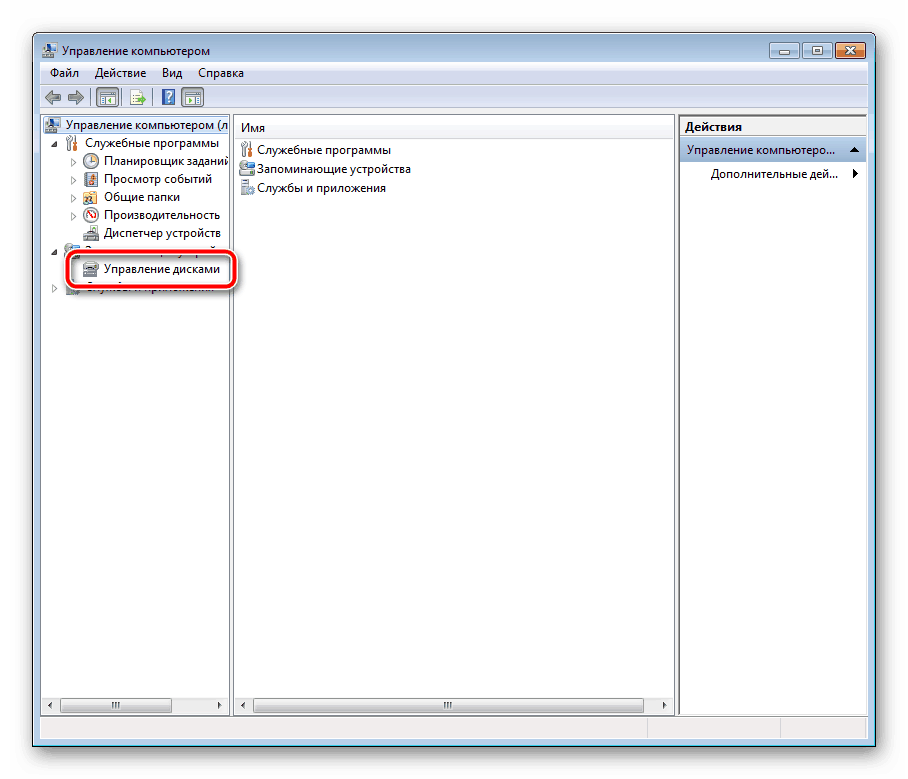 Теперь задействуем встроенную функцию Windows по работе с логическими дисками. Она нам понадобится, чтобы создать новый раздел из только что выбранного свободного пространства.