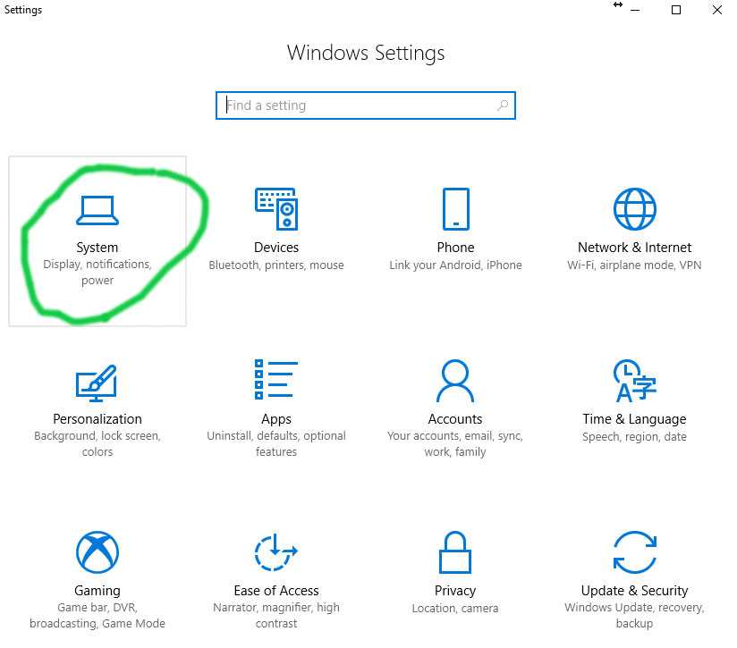 - Появится контекстное меню, в котором требуется выбрать пункт «Система».