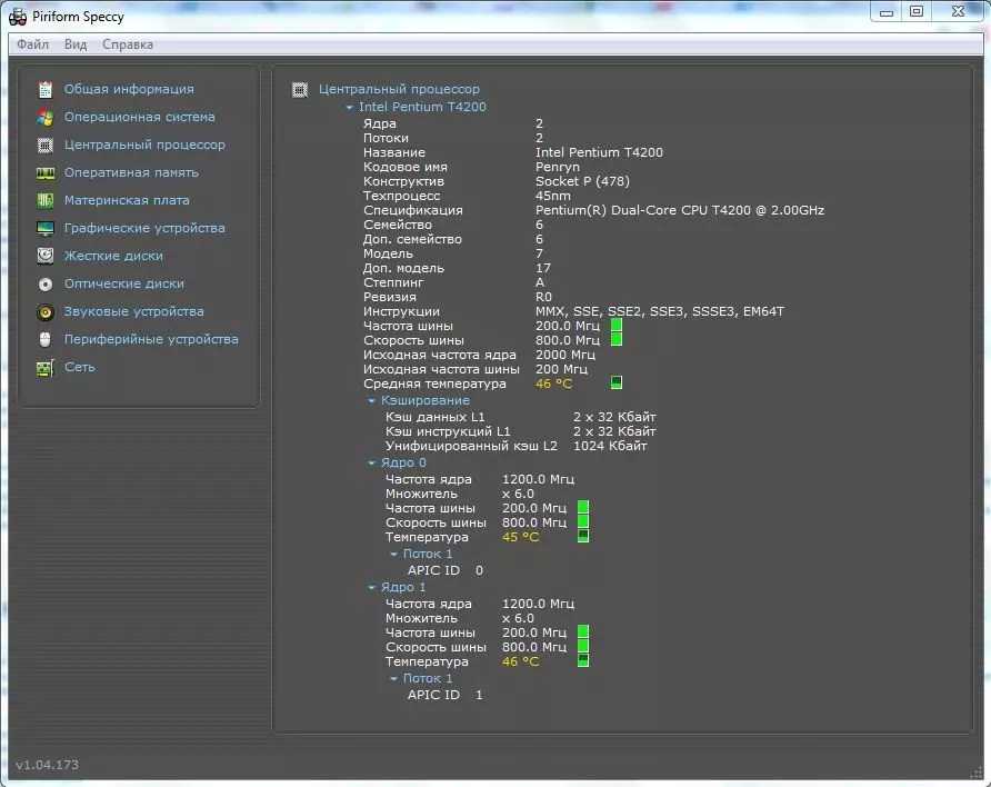 Небольшая программа Speccy является интерпретацией CPU-Z в более красивой оболочке и на русском языке. Точность отображения данных с датчиков достаточно высока, а техническая информация вполне устроит любого даже опытного юзера. На наш взгляд, этот вариант – «золотая середина», учитывая, что продукт не стоит ни копейки.