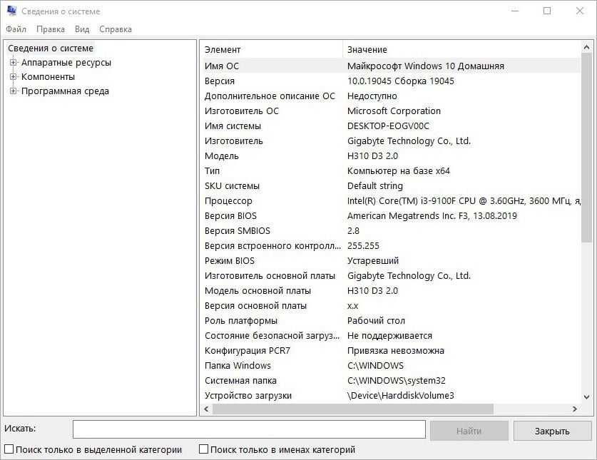 Команда msinfo32