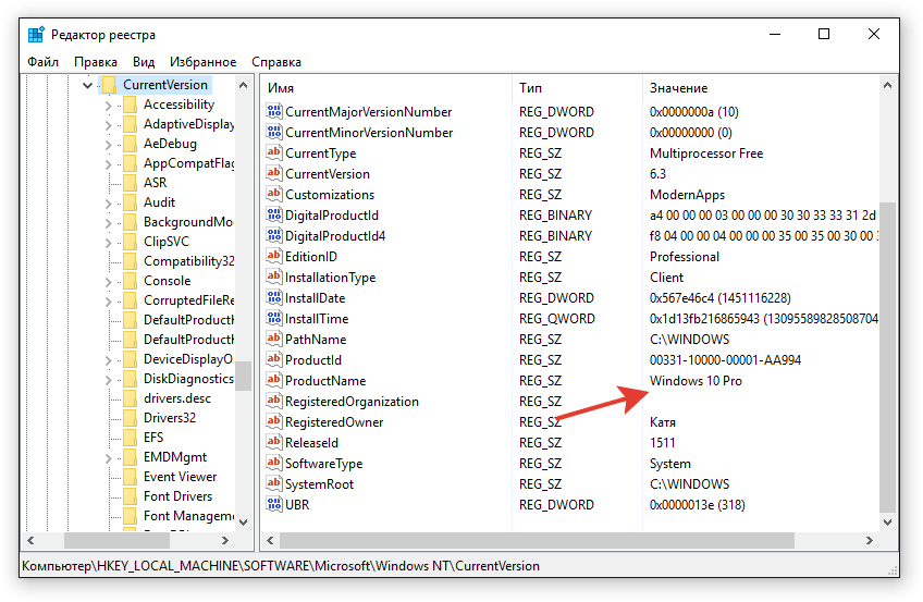 появляется ключ Upgrade, которого нет при чистой установке Windows 10. Упоминавшийся уже ключ Source OS в параметре ProductName расскажет, с какой версии Windows на текущую вы перешли. Таким образом, наши изыскания можно подытожить следующим:
