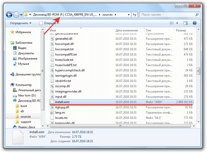 «F» – это буква смонтированного образа. Если самым большим был файл install.esd, то впишите его вместо install.wim. В случае с мультизагрузочным образом (x86 и x64) следует поочередно ввести команды вида «dism /Get-WimInfo /WimFile:F:\x86\sources\install.wim /index:1» и «dism /Get-WimInfo /WimFile:F:\x64\sources\install.wim /index:1».