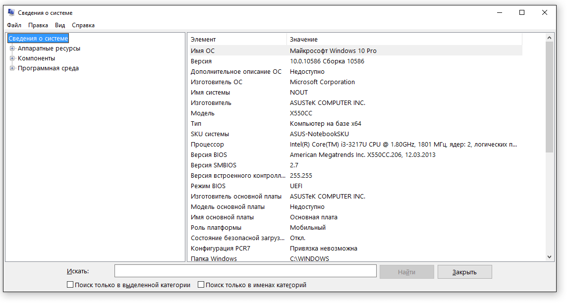 Этой «десятке» требуется обновление: версия 1511 устарела, в августе 2016 вышла новая версия под номером 1607. Сопоставимые по информативности сведения можно получить другим способом: нажмите на клавиатуре Win+R, выполните «msinfo32». В окне «Сведения о системе» вы тоже найдете имя, версию и разрядность.