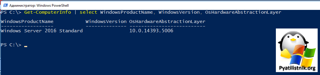 (Get-ItemProperty «HKLM:\SOFTWARE\Microsoft\Windows NT\CurrentVersion»).ProductName