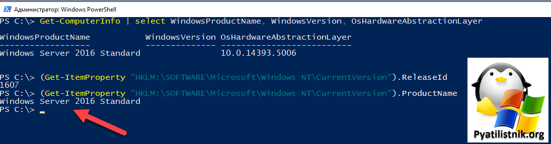 Так же вы можете через PowerShell запросить информацию, о версии ОС из реестра напрямую, для этого введите: