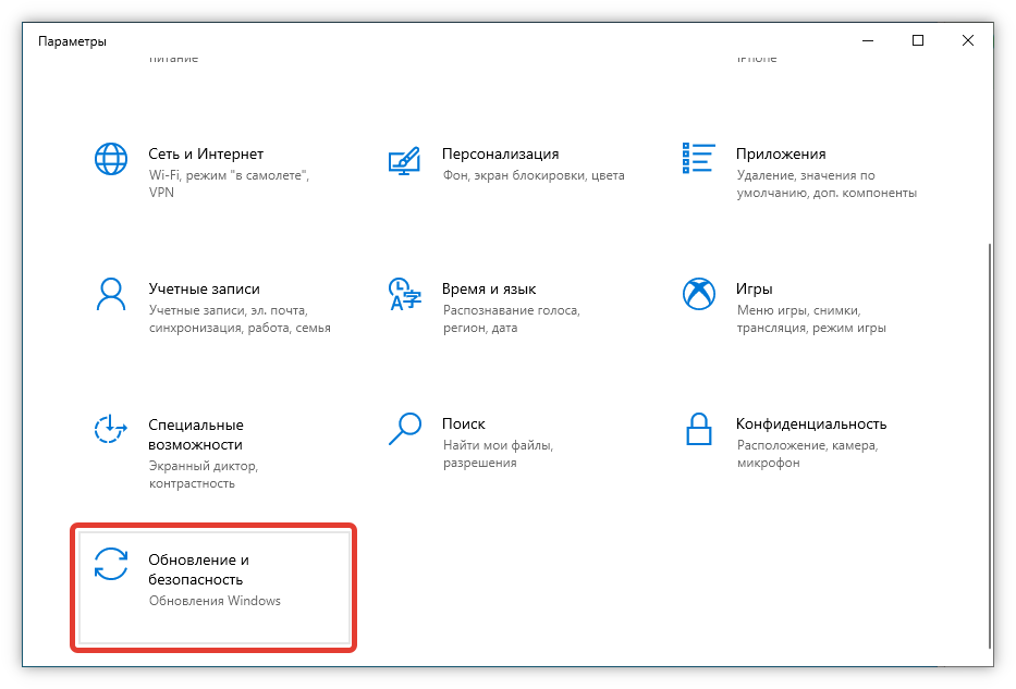 - Жмем сочетание клавиш Windows+I, открыв «Параметры», а затем переходим в раздел обновления и безопасности.