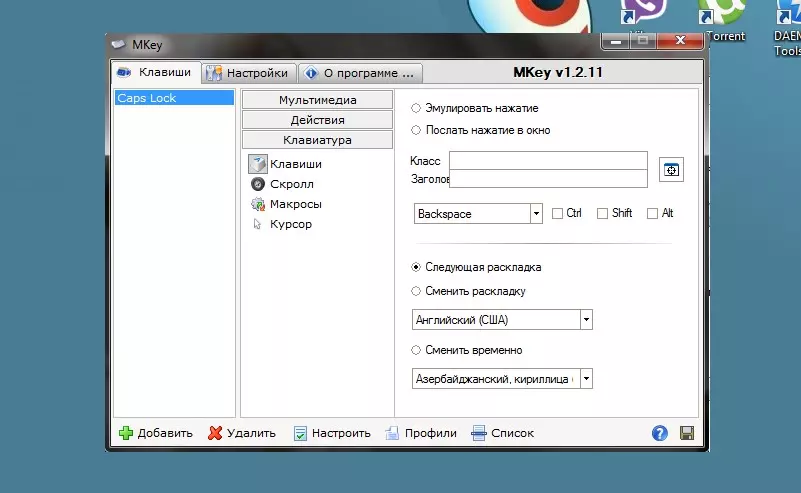 Mkey помогает настроить «горячие клавиши» и для программы, и для всей системы. Например, с её помощью можно выбрать смену раскладки при нажатии «Caps Lock».