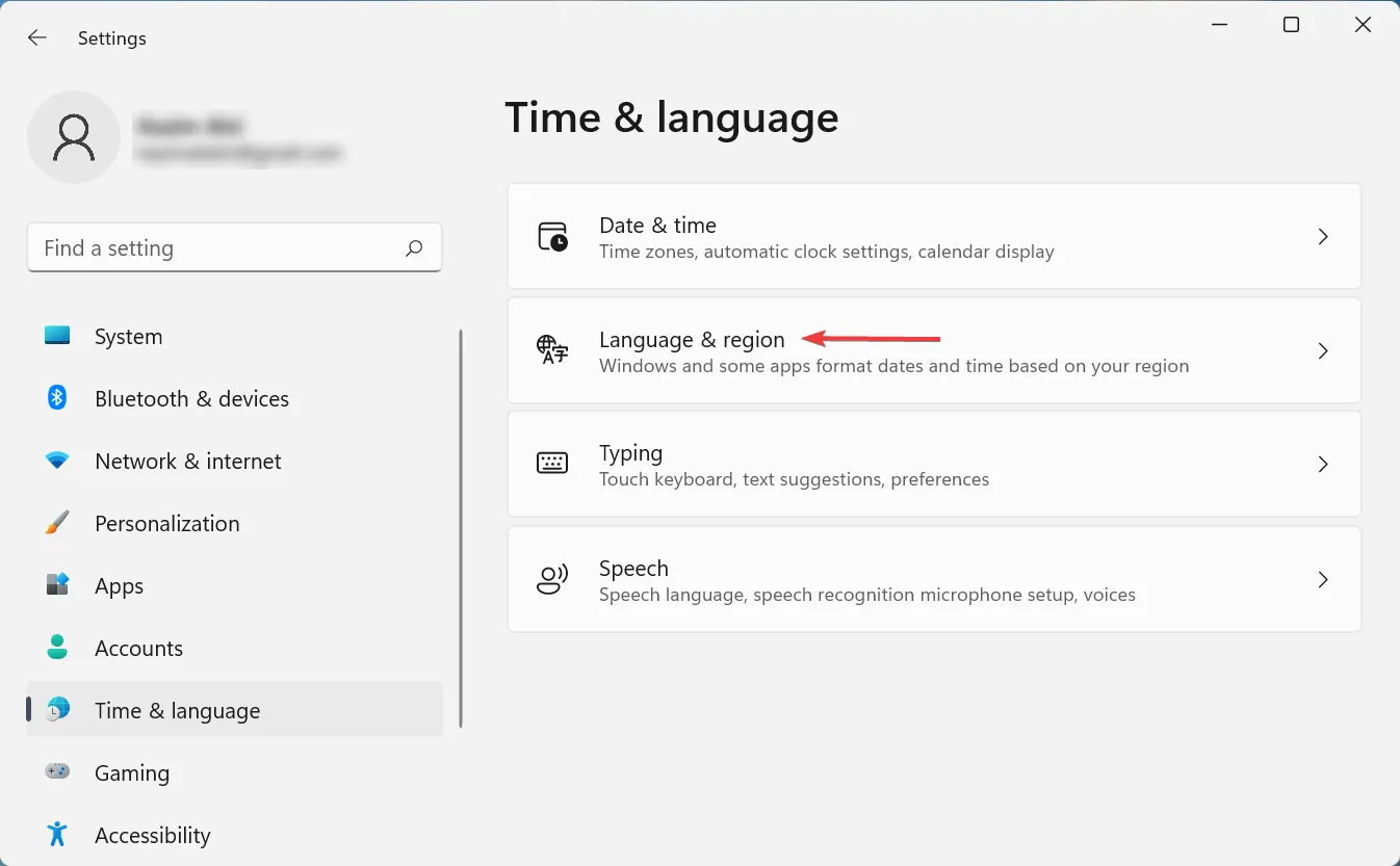 - Откройте «Параметры» и перейдите в «Время и язык».