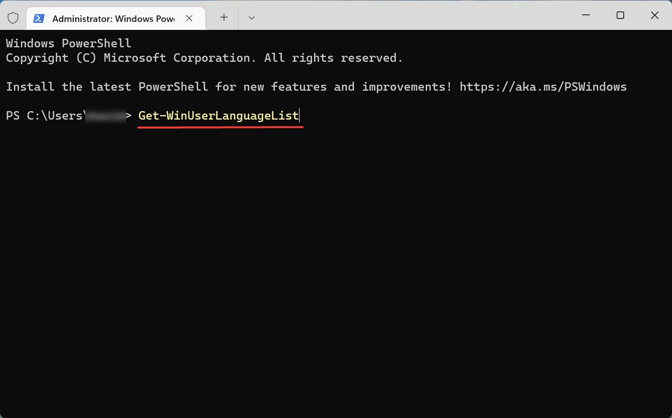 Теперь вставьте следующую команду и нажмите Enter, чтобы вывести список всех раскладок клавиатуры, добавленных в систему:Get-WinUserLanguageList