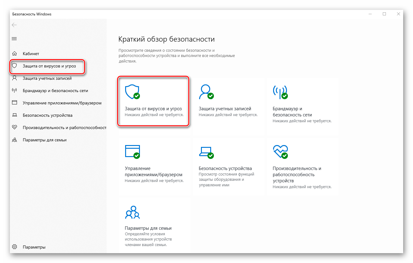 Далее нам понадобится область Защита — Защита от вирусов и угроз.