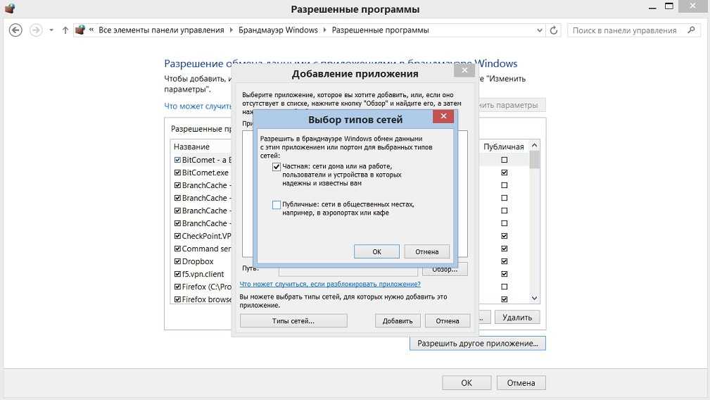 Вы можете разблокировать порты для приложений, не перечисленных в допустимых компонентах. Делайте это только в том случае, если знаете и доверяете производителю софта.