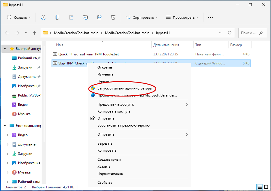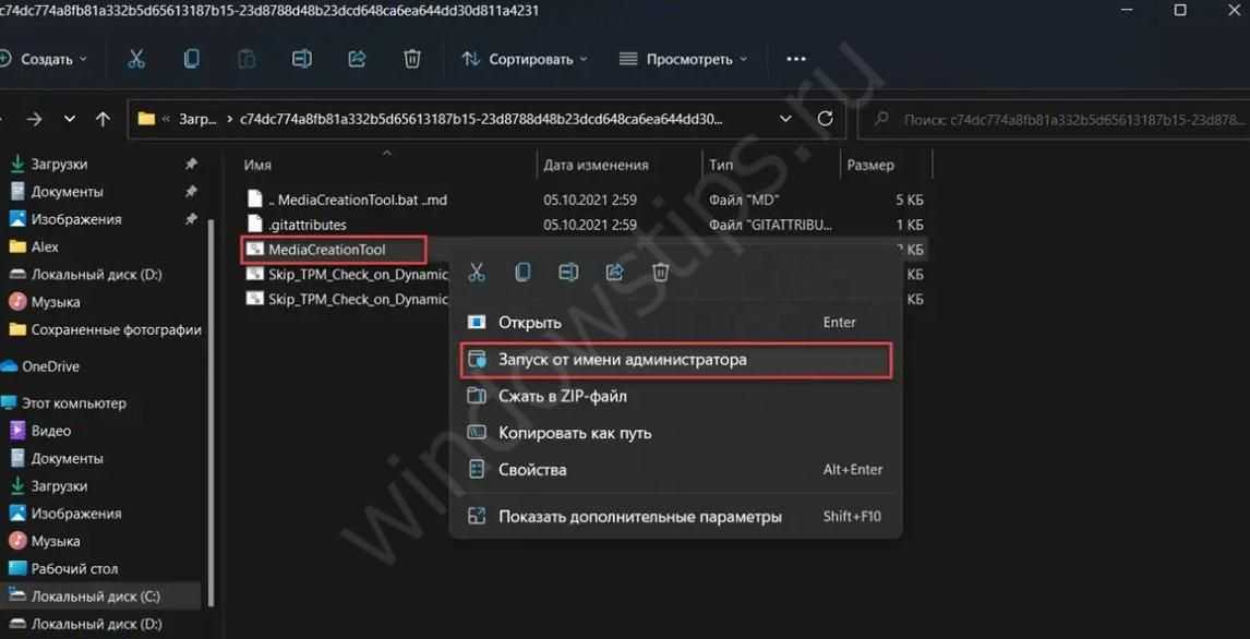 Распаковав архив, зайдите в папку bypass11 и лежащий в ней запустите командный файл Skip_TPM_Check_on_Dynamic_Update.cmd от имени администратора.