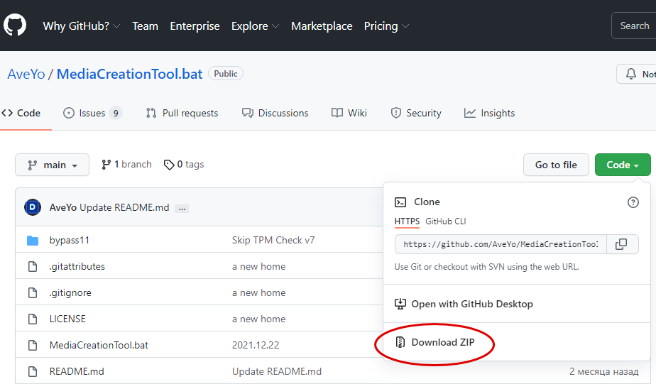 Распространяется инструмент в архиве, который содержит еще один командный файл — скрипт, блокирующий проверку совместимости.