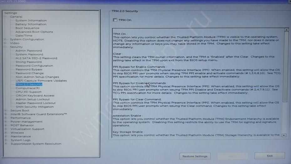 Включение модуля TPM через UEFI