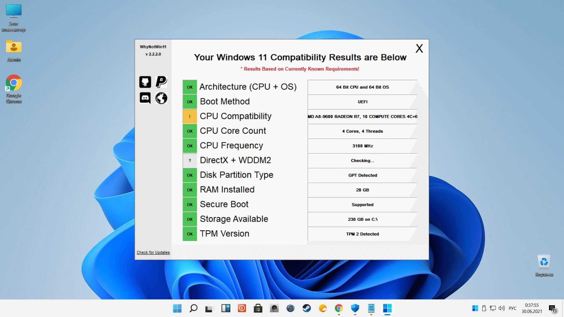 WhyNotWin11 — утилита проверки совместимости оборудования компьютера с Windows 11.