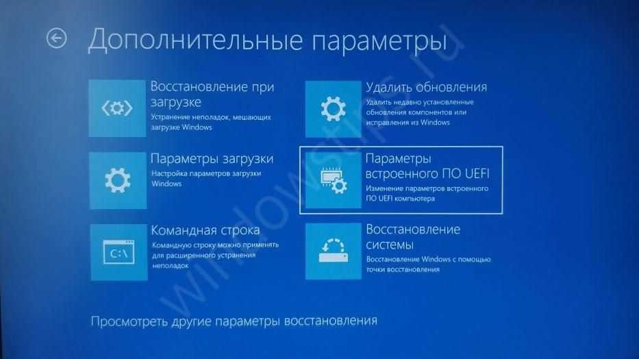 - Жмите на «Параметры встроенного ПО UEFI».