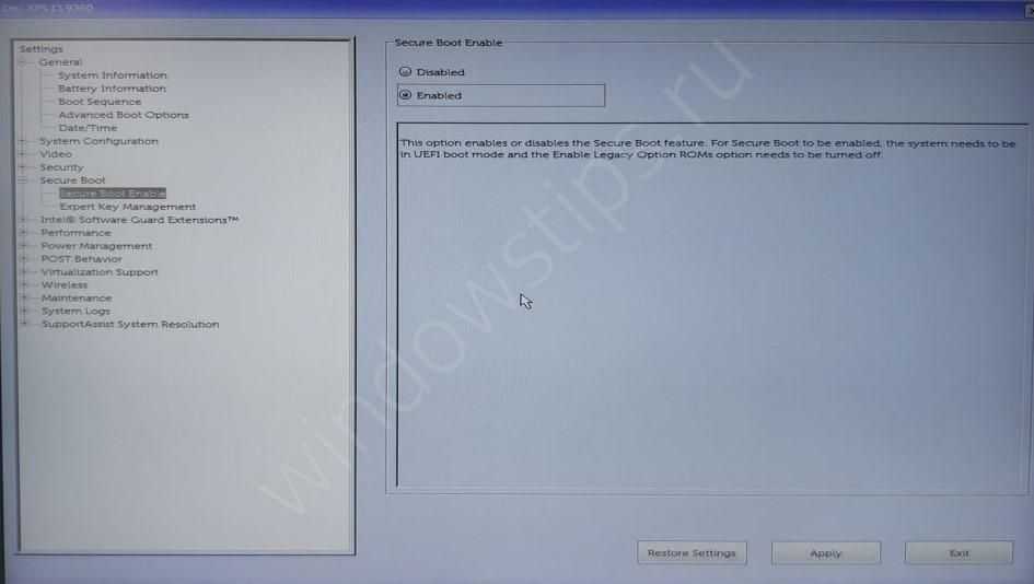Включение Secure Boot через UEFI
