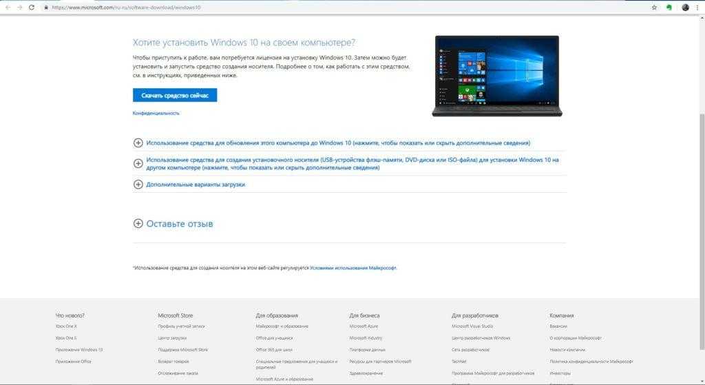 Скачайте с сайта Microsoft программу обновления/установки Windows 10 — Media Creation Tool. Её отличие от остальных средств в том, что она скачивает лицензионный образ Windows 10 с сайта Microsoft, а не использует, как большинство сторонних установщиков Windows, уже готовые образы и архивные папки с нужной вам копией Windows.