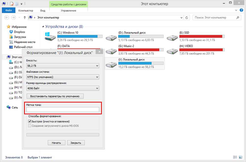 Переименовать устройство можно также при форматировании, избрав для своего названия поле «Метка тома»:
