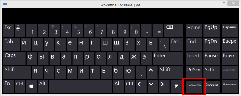 Если уж так случилось, что у вас нет Num Lock , а комбинации Fn предназначены для других целей, активировать цифровой блок можно с помощью встроенной виртуальной клавиатуры. В Windows 8.1 её можно найти на стартовом экране «Приложения», в Windows 10 — в меню Пуск. Вызвав её, нажмите в правой нижней окна части кнопку «Параметры».