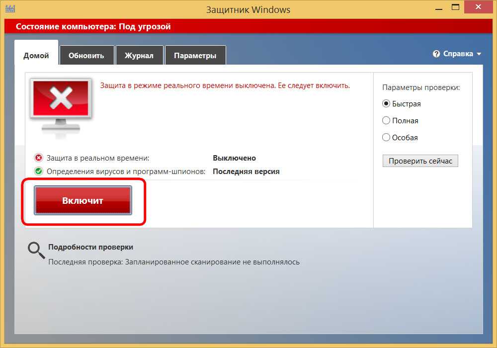 Если защитник Windows отключен как его включить