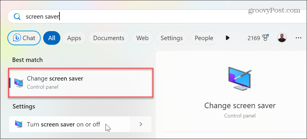 - нажмите Включить или выключить экранную заставку вариант по результатам.