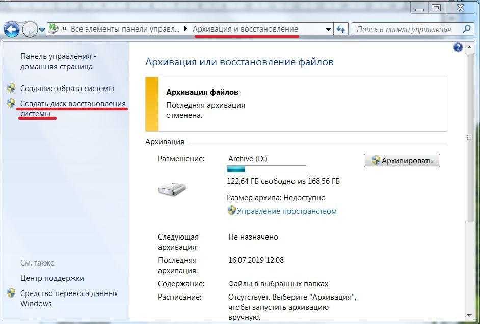 Создать DVD восстановления в windows можно в разделе «Панель управления» → «Система и безопасность» → «Архивация и восстановление» → «Создать диск восстановления системы». Этот же способ работает и в более новых версиях системы, отличается только название: «Резервное копирование и восстановление (windows 7)» вместо «Архивации и восстановления».