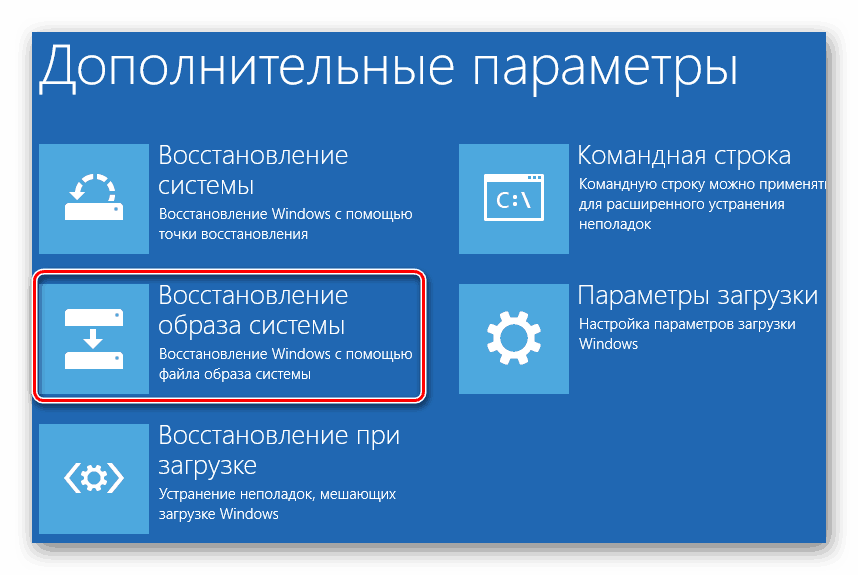 В новом окне перейдите в пункт «Восстановление образа системы».