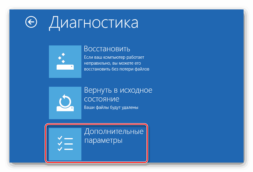 - Откроется окошко «Диагностика». В нём нужно выбрать «Дополнительные параметры».