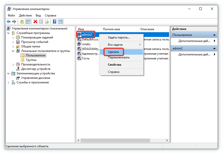 - Используя навигацию на боковой панели слева, проследовать по пути «Служебные программы» → «Локальные пользователи» → «Пользователи».