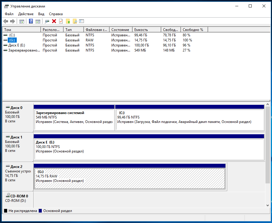 В управлении дисками вы должны увидеть все подключенные накопители к компьютеру. Нам нужно найти внешний диск, который мы подсоединили к USB-порту.