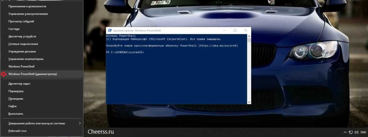 В более свежих версиях Виндовс, Нажмите комбинацию WIN+X. Здесь вам нужен пункт «Windows PowerShell (администратор)».