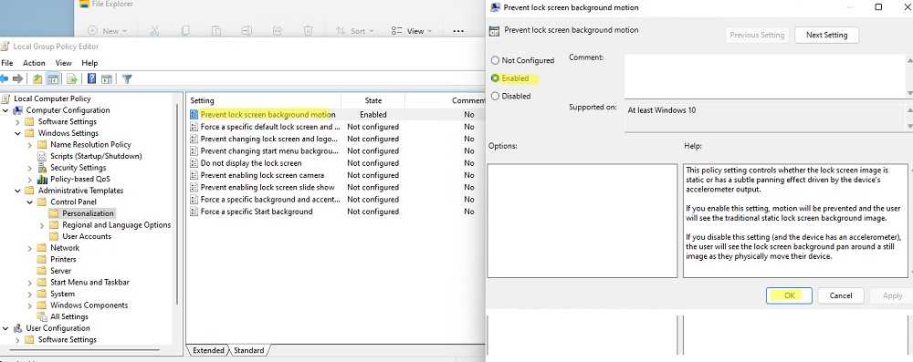 Чтобы изменить настройку параметра групповой политики достаточно выбрать новое значение и нажать Ok. В данном примере мы установили данный параметр в Enabled – значит данная настройка Windows включена. Если вы выбрали Disabled, значит вы отключили в Windows настраиваемый параметр.