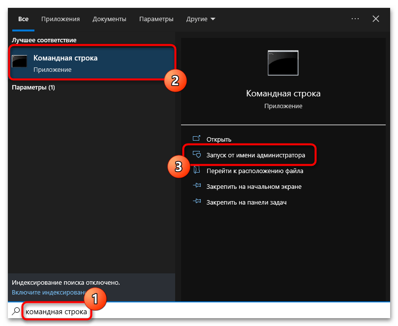 По завершении в «Пуске» отыщите «Командную строку» и обязательно запустите ее от имени администратора.