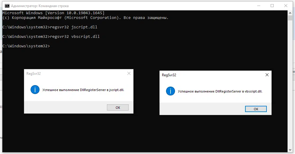 Способ 3. Перерегистрировать jscript.dll и vbscript.dll