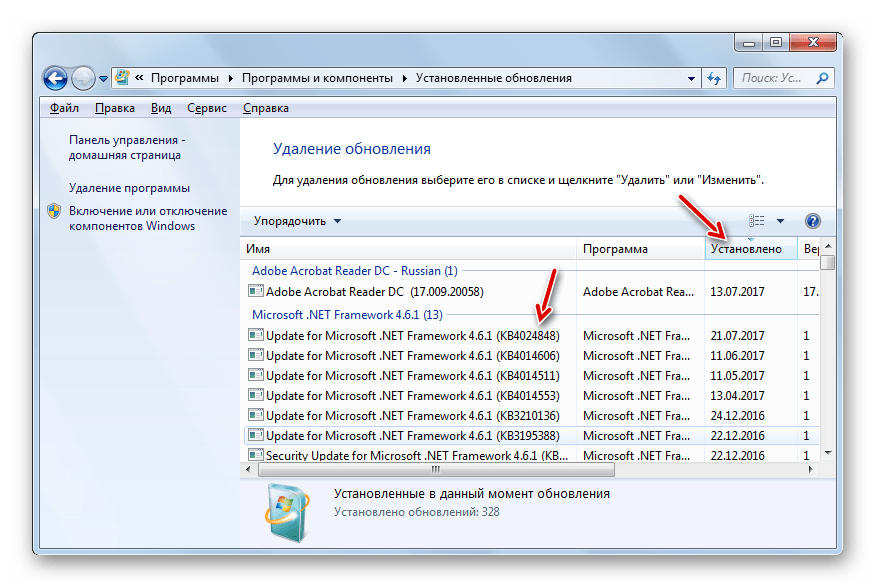 - кликните на кнопку «Удалить обновления», чтобы открыть список обновлений, установленных в вашей системе;